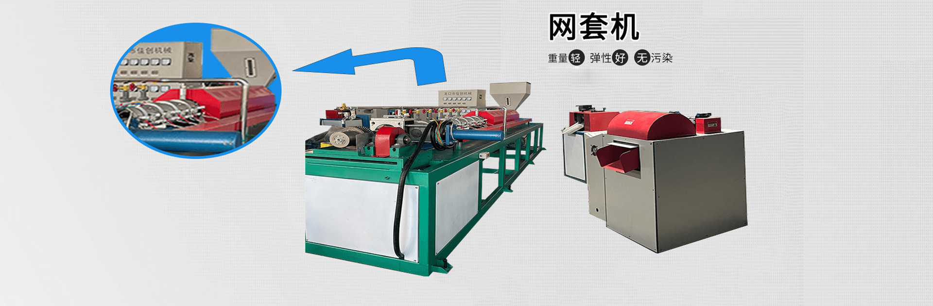水果網套機通常由擠出機、模具、牽引裝置、切割裝置和收卷裝置等部分組成。工作時,原材料經過擠出機的加熱和加壓,通過模具擠出成網套形狀